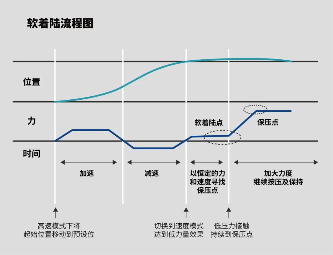 The purpose of “soft landing” is to achieve force control during the process of contact between the actuator and the machined part, to prevent device damage or other problems due to pressure.