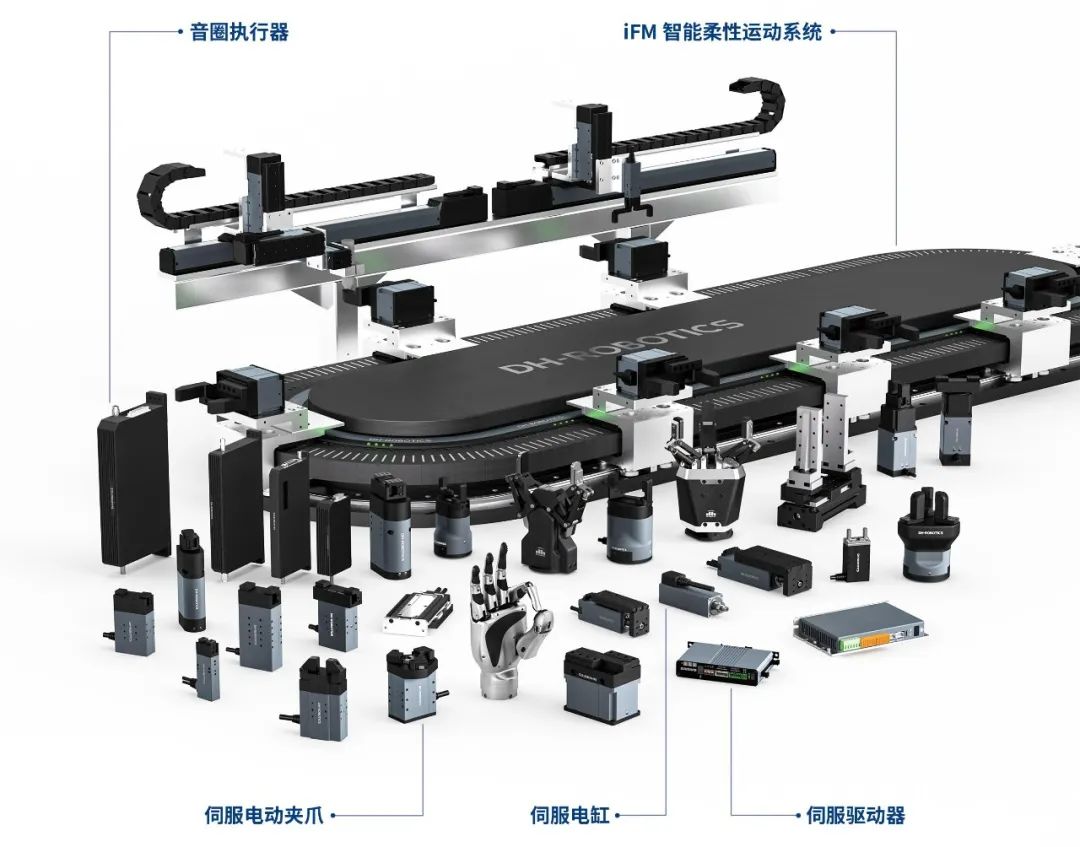 DH-Robotics has been deeply engaged in the field of precision operation and control, filling the gap in the field of precision actuators in China. It has more than 200+ products of servo electric gripper, linear coil actuator, servo electric cylinder, DH-5 smart hand, iFM intelligent flexible motion system, etc. We provide flexible, intelligent and low-carbon electric actuator products and solutions for 3C, new energy, semiconductor and other industries to help customers improve production efficiency and promote intelligent manufacturing and sustainable development.